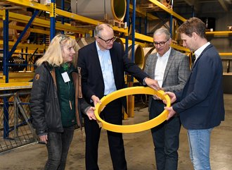 Unsere Geschäftsführer Stefan Wurth und Kai Modtler haben den Hückeswagener Bürgermeister Dietmar Persian sowie die Wirtschaftsförderin Andrea Poranzke Ende letzter Woche herzlich in Empfang genommen und informierten sie über alles Wissenswerte rund um Joh. Clouth. Bei dieser Gelegenheit wurden ebenfalls die Rohstoffe, die für die Herstellung der Schaber benötigt werden, gezeigt.